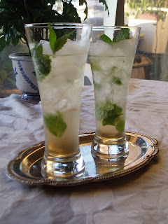 Yes sports fans, that is exactly what it sounds like- a mint julep made with champagne and cognac instead of whiskey. Ok, this one takes the triple crown! Even Miss Shaker Two, who is not a mint fan, enjoyed this. I would happily drink this while sitting on the veranda entertaining my beaus. Tomorrow may be another day, but we need another bottle tonight.